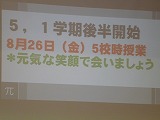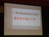 今日は、1学期前半終了日ということで、お話朝会がありました。