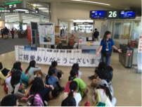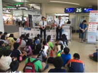 ②空港に到着後はパイロットの方から飛行機に乗る時のマナーなど、いろんな話しをしてもらいました。