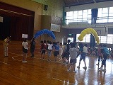 6年生は、ゲーム「空飛ぶ絨毯」をしました。一年生をマットに乗せて、優しく運んであげる姿は、さすが6年生という感じでした!