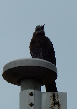 掲揚台のてっぺんにヒヨドリを見つけました。