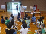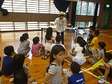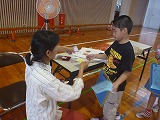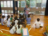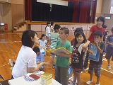 「Hello.My name is~. Nice to meet you.」という簡単な英会話ですが、始まるまで、実際に通じるのか不安そうな顔をしている子もちらほら。