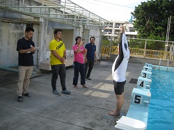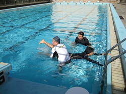 クロールの指導のポイントと学習の流れについての実技も交えた講座で、たくさんの先生が参加しました。