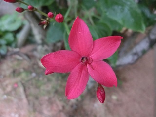 テイキンザクラの赤い花が咲いています。