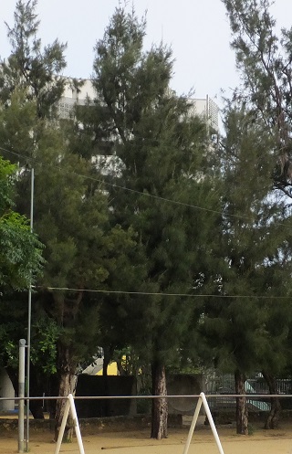運動場の西側にモクマオウ(和名 トキワギョリュウ)