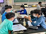 6年1組は、リトマス紙を使って水・食塩水・石灰水・アンモニア水・塩酸・炭酸水が何性になるのかを実験していました。2組は国語の学習で「メディアと人間社会」という池上彰さんが書いた文章を読んで、自分の考えをグループで話し合い共有することで視野を広げる活動に取り組んでいました。