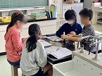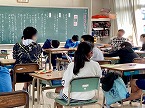5年1組は「く(くらべられる量)も(もとにする量)わ(割合)の式」にあてはめながら「割合」の学習のまとめの問題に取り組んでいました。2組は「どうやったら電磁石の力が強くなるのか」という問いに対し、電池の数をふやしたり、導線の巻数を変えたりする実験を通して検証していました。