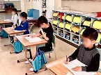 1年生は「2桁+1桁」のたし算に取り組んでいました。数え棒を使って思考を見える化して理解を促していました。その後は適応問題に取り組み、終わった児童は自分で問題をつくって計算に励んでいました。