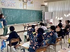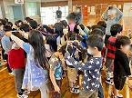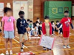 2校時に次年度入学する園児を招待してのお招き会が体育館で行われました。各教科の授業や休み時間、給食時間等の学校生活の様子を、クイズ形式で1年生が上手に伝えていました。最後は、1年生の教室フロアを案内し、教室やワークスペース、トイレ、ロッカーの使いかたなどを確認していました。