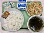 今日の給食の献立は、フーいりちー、魚のごま味噌焼き、もずくのすまし汁、ごはん、ちんすこう、牛乳でした。