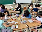 2年1組は卒業する6年生のお兄ちゃん、お姉ちゃんにむけてのお祝いメッセージカードを書いていました。2組は運動場でキックベースボールに取り組んでいて、得点の方法を工夫することで、蹴ることが苦手な児童も楽しんで参加していました。