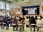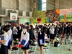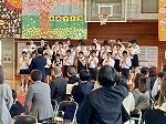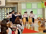 離任式後に離任される先生方が各学年のフロアを回りました。そこで、プレゼンターの児童から花のプレゼントが手渡されると、これまで涙をこらえていた児童の目から大粒の涙がこぼれていました。とても心に残るお別れの式となりました。