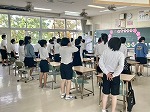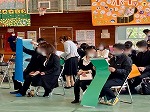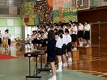 今年度最後の集会、修了式・離任式は体育館に全校児童を集めて行う予定でしたが、最近の感染者状況を踏まえ、急遽放送による式に変更しました。修了式では校長先生から各学級を呼名して今年度の修了認定を行うと、子ども達は充実した顔つきで元気よく「はい」と返事を返し、校長先生の話に耳を傾けていました。児童代表挨拶では5年生の2人の児童がこれまでの頑張りや次年度に向けての決意を述べていました。