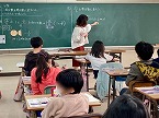 4年1組は分数があらわす大きさ「1より小さい大きさ」「1と同じ大きさ」「1より大きい大きさ」について学習していました。2組は仮分数を帯分数にするにはどうしたらいいのかについて、実際に同じ大きさの円を使って確認していました。