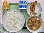 今日の給食の献立は、冬瓜のそぼろ煮、ちくわのオーブン焼き、いよかん、ごはん、牛乳でした。