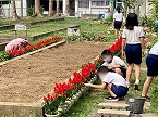 4年1組は卒業式に使用するための花鉢やプランターの準備をしていました。2組は地図帳を使って、問題を出し合っていました。3校時には学級対抗のドッジビー対決を楽しんでいました。