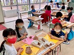 1年生は6年生に対して感謝の気持ちをつたえるための壁画を作成していて、終わった児童は粘土遊びをしたり、4月から入学してくる新1年生のための飾り付け等を作っていました。この1年間で大きく成長した1年生でした。