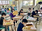 6年1組は先週行われた修学旅行の思い出を新聞に書いていました。2組はてこの学習に取り組んでいて、「重い物をできるだけ小さい力で持ち上げるにはどうしたらいいか」という課題に対して、実際にてこを使って実験していました。