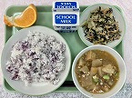 今日の給食の献立は、大根のそぼろ煮、ひじきのごまサラダ、ゆかりごはん、デコポン、牛乳でした。