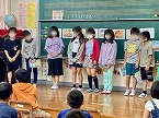 3年生が1年間の英語学習のまとめとして、英語劇の発表会をしていました。担当する自分の台詞を覚え、上手に発表していました。