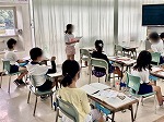 2年1組は運動場でドッジボールに取り組んでいました。活動後の振り返りでは、「レベルアップするにはどうしたらいいのか」などの問いに対し、子ども達は自分の考えを発表し交流していました。2組は道徳「つくえふき」という教材文を読んで「好き嫌いに左右されずに生活するにはどうしたらいいのか」について自分の意見を発表しあいながら考えを深めていました。