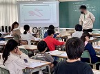 5年1組は円と正多角形の関係を学習していて、円の中に正六角形を描く方法について図形の特徴をもとに考えていました。2組は家庭科で「ゆでる調理をしよう」ということで、ゆでる料理の良さしたいや調理に使う器具等について確認していました。