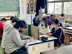今日は5年生と6年生の授業の様子を紹介します。 5年1組は「みはじ」の式を使いながら、「速さ」のまとめ問題に取り組み、学習内容の復習をしていました。2組は「Who is behind you ?」のフレーズを使い、男女仲よく楽しみながら伝言ゲームに取り組んでいました。 6年1組は「なぜ日本は海外へ5600億円も援助をしているのか?」という問いから、ODA(政府開発援助)の働きについて学習していました。2組は「水溶液の性質とはたらき」についてこれまで学習してきたことをプリントで確認したあと、単元テストに取り組んでいました。 今日の給食の献立は、すき焼きごはん、ミンチカツ、キャベツのごまサラダ、タンカン、牛乳でした。 【おまけ】 先月の10分間走大会に続き、今月は縄跳び大会が行われます。前跳びで各学年が設定した目標タイム(高学年1分30秒)を連続で飛び続けるというものです。今日は5年生と6年生の縄跳び大会が行われました。男女に分かれて行われましたが、互いに応援し合いながら、一生懸命飛んでいる姿は格好良かったです。