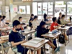 5年1組は家庭科の学習で調理実習に向けて、野菜のゆで方について動画を見ながら確認していました。2組は英語の1年間の復習として「when is your birthday ?」「What do you want for your birthday ?」等のフレーズに対する返答の仕方を確認していました。