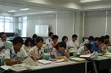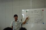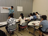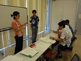 第10回初任者研修が厚生会館・真和志庁舎・市庁舎の3つの会場で実施されました。小学校は、国語と算数、中学校は各教科で模擬授業を行いました。 模擬授業では、(1)指導案の説明 (2)模擬授業 (3)初任者による協議(質疑・応答)を各グループごとに行い、最後に指導主事や教科指導員からの助言等を受けました。