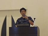講義Ⅰ「本市における学力向上推進の取組」についてを学校教育課 池原鉄主事。