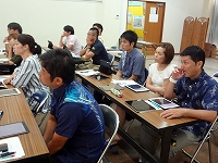 「タブレット端末活用講座」を研究所会議室で行いました。実施しました。小中学校から、多くの先生に参加して頂きました。講師に、興洋電子上地弘美さんをお招きして、「タブレットの基本操作」から、「ロイロノートスクール」等、いろいろな教科場面で、活用の期待されるアプリを実際に操作しながら研修ができました。参加した先生方からは「すぐにでも使ってみたいと思う。子ども達も興味を持つと思うので、学びやすいと思う」「タブレット端末を電子黒板と一緒に活用することができる教材研究をしていきます」「美術の授業で生徒の作品や教師の手元を映すなど簡単に出来そうなので活用したい。パワーポイントをよく使うがロイロノートで代用できそうです」等の感想をもらいました。
