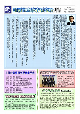 日頃より、那覇市教育研究所の事業に御理解と御協力を賜り感謝申し上げます。2019年度 所報第1号を発行いたしましたので、お知らせいたします。職員室等に掲示し、御活用いただけると幸いです。