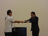 平成29年度 108期教育研究員(前期)の成果報告会並びに修了式が行われました。多くの来賓や関係者の見守る中、諸喜田研究員、玉那覇研究員が半年間の研究の成果を堂々と発表しました。そのあとの修了式では、儀間稔所長の式辞や渡慶次克彦教育長からの祝辞、そして所属長を代表して田名真利校長(大道小学校)のご挨拶がありました。108期教育研究員は10月からそれぞれの学校現場に戻ります。今後は、研究の成果が児童生徒や教職員の授業力向上に還元されることが期待されます。