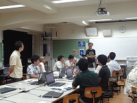 第3回情報担当者研修会を石田中学校で実施しました。はじめに担当主事より、新学習指導要領における情報活用能力の育成の重要性や在り方について共通確認をしました。続いて琉球大学琉球大学教育学部准教授日熊隆則氏に、講義をして頂きました。演題は「プログラミング教育の可能性について」でした。また、後半は、教育用プログラミング言語「ドリトル」を活用したワークショップを行いました。参加した先生方からは「プログラミングについて、よく学ぶことができました。今後学校で他の職員に伝えられるように自分の学びを深めたいです。」「ドリトルを使って、プログラムを刷るのは楽しかったです。できたときの感動が大きいとと思いました。生徒の自発的な取組、論理的思考、間違いを探す等は、数学でも必要なことだと感じました。」「とても興味が湧き、子ども達にも分かりやすいプログラミングでした。講師の日熊先生の説明がとても楽しそうで、楽しく研修をさせて頂きました。」等の感想をもらいました。