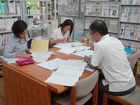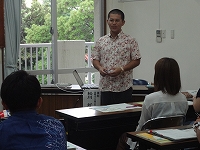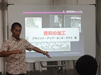 「授業づくり講座Ⅱ」は、中学校は各教科別に、小学校は社会科に特化して講座を行いました。小学校は那覇市立古蔵小学校の松川好孝教諭を講師にお招きし講義を中心とした内容で、中学校は教科別に研究所指導主事と一緒に教材づくりをし、学ぶことができました。