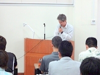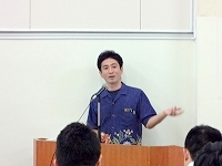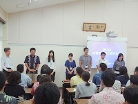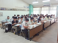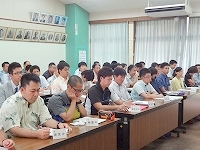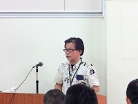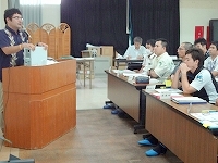 市内の小中学校の情報教育担当者が一堂に会し、本市の小中学校のPCネットワークについて理解する研修です。説明①では、担当主事より「平成28年度那覇市における現状・課題及び平成29年度那覇市における情報教育の方針等」について説明がありました。続いて情報G又吉主査より「那覇市立学校における情報機器類の管理及び運用に関する要綱について」「Webフィルタリングの設定変更について」「タブレット端末貸出事業」等の説明がありました。最後に、情報G上原主査より、トラブル対応依頼の多い「情報機器の障害」事例について確認がありました。
