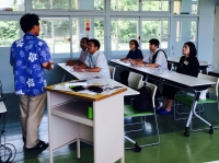 OISTは,『国際的に卓越した科学技術に関する教育及び研究を実施することにより、 沖縄の自立的発展と、世界の科学技術の向上に寄与することを目的』として設置されたものです。次に,名護市三原に今年4月に開校したヒューマンキャンパス高等学校・名護本校を訪問しました。仲地暁校長先生に,学校概要・生徒のようす・地域との交流についてご紹介いただきました。ここは,高校課程の学習を進めながら,専門教育機関との連携により,20種類以上の専門分野を学ぶことができる通学型の定時制高校です。一定の条件を満たせば,高校卒業資格を取得することができるのだそうです。