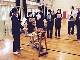 6年生が石嶺町伝統エイサー会の方を講師にお招きして地域のエイサーのお話を聞きました。