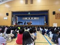 1年生と4年生の代表による1学期のふりかえりの発表と、校長先生のお話がありました。