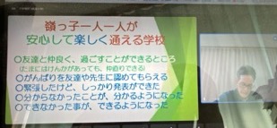 meetで校長先生のお話を聞きました。みんなで安心して楽しく通える学校にしましょうね!