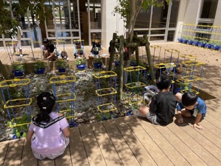 1年生が、あさがおの観察をしていました。