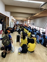 5年生無事に帰校しました!6年生が盛大に迎えてくれました。
