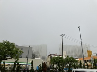 朝7時の石嶺はすごい霧!下校時間は雨らしいので傘を忘れずに