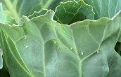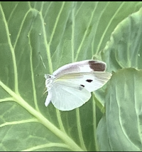 3年生が理科の観察のために植えているキャベツに蝶々がたまごをうみつけていました。