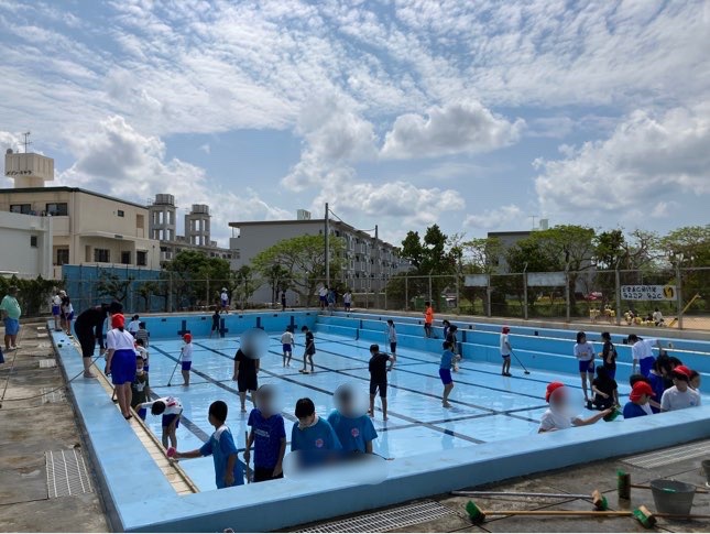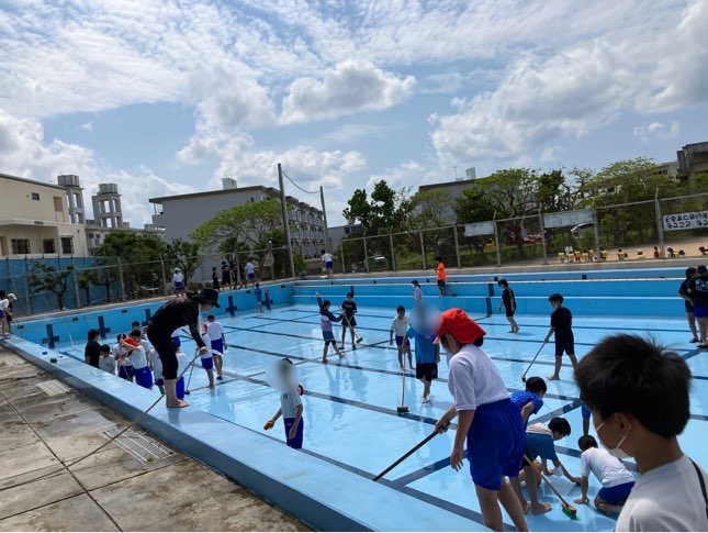 6年生のお兄さんお姉さんたちが、プールを掃除してくれました。