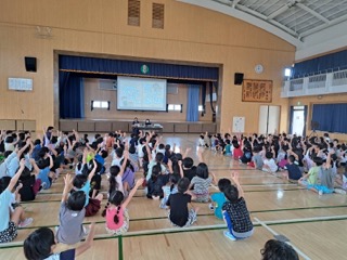 1年生と4年生の代表による1学期のふりかえりの発表と、校長先生のお話がありました。