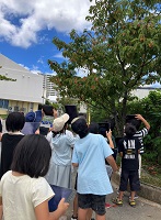 6年生が石嶺町伝統エイサー会の方を講師にお招きして地域のエイサーのお話を聞きました。