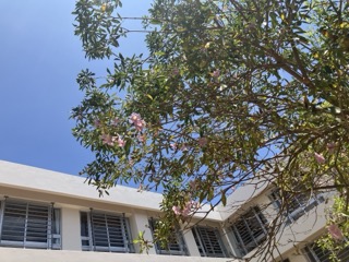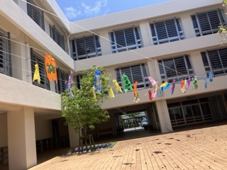 中庭の様子です!今年も各クラスで作ったこいのぼりが泳いでます。