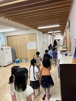 今日の2校時に、1年生が校内たんけんで学校内を見学していました。