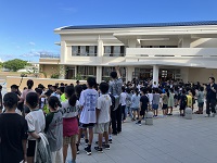 石嶺小学校の1年生から6年生まで総出で盛大なお見送り(動画あり)
