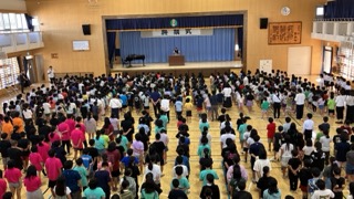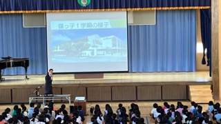 1年生と4年生の代表による1学期のふりかえりの発表と、校長先生のお話がありました。